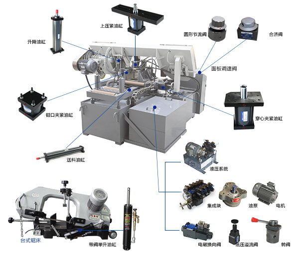 2014年山東最大的一家?guī)т彺补窘?jīng)朋友介紹,并在網(wǎng)上查看了我們的公司網(wǎng)站等相關(guān)信息后,聯(lián)系到我們,希望我們能為他們設(shè)計定做帶鋸床液壓系統(tǒng)配件。因為他們公司帶鋸床主要以出口為主,質(zhì)量要求高,但當?shù)夭少彽囊簤号浼|(zhì)量并不是很穩(wěn)定,給他們售后也帶來了諸多不便。而他們主要的質(zhì)量問題就出在升降油缸。帶鋸床液壓缸中,最關(guān)鍵的就是升降液壓缸,如材料或工藝沒達到要求或者安裝不注意出現(xiàn)問題,則升降機構(gòu)會出現(xiàn)內(nèi)泄露機器自動會下降現(xiàn)象,抖動現(xiàn)象等。缸筒材料若是未經(jīng)過珩磨或滾壓處理的無縫鋼管,內(nèi)壁光潔度不夠,會產(chǎn)生活塞、缸筒、密封件配合不良等各種問題產(chǎn)生。而壁厚很薄的缸筒,當液壓油溫高了,缸筒容易熱脹變形,導致漏油,使用壽命較低;活塞桿作為油缸主要原材料之一,行業(yè)標準鍍鉻層厚度是2~3絲,部分油缸廠家為降低成本,會使用1絲不到的活塞桿,短期看不到問題,但是大大降低油缸使用壽命。
